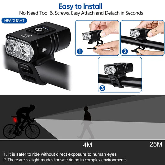 LED Bicycle Front Light Type-C Rechargeable Bicycle Headlight MTB Road Bike Headlamp Easy to Install Cycling Accessories