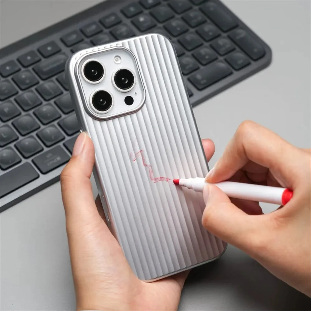8 - 15 Working days to US & AustraliaLuxury Stripes Metallic Paint Armor Case For iPhone 17 Air 16 15 14 13 Pro Max Shockproof Camera Protective Slim Matte PC Funda