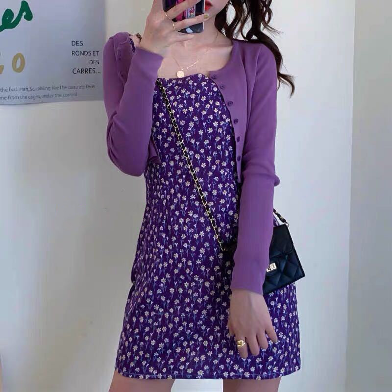 Available in two delightful colors: the elegant Purple cardigan and the eye-catching Floral suspender skirt, both in One Size to fit your needs perfectly. Whether you're heading to brunch, a casual outing, or a special event, this dress is your go-to choice for a fashionable statement.